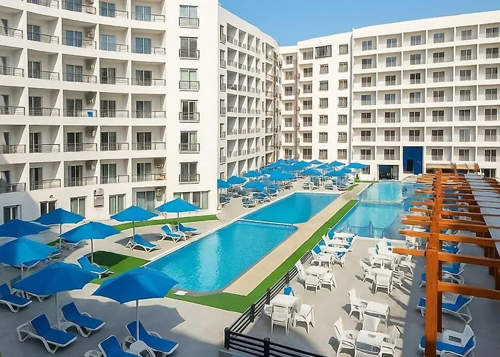 To enjoy your vacation in Hurghada, stay at Golden Tiba Resort Hurghada, which is 1.8 miles from Falco Safari and around 15 minutes' drive from Hurghada Grand Aquarium. The apartment offers views of pool from a terrace with a swimming pool and a seating area.